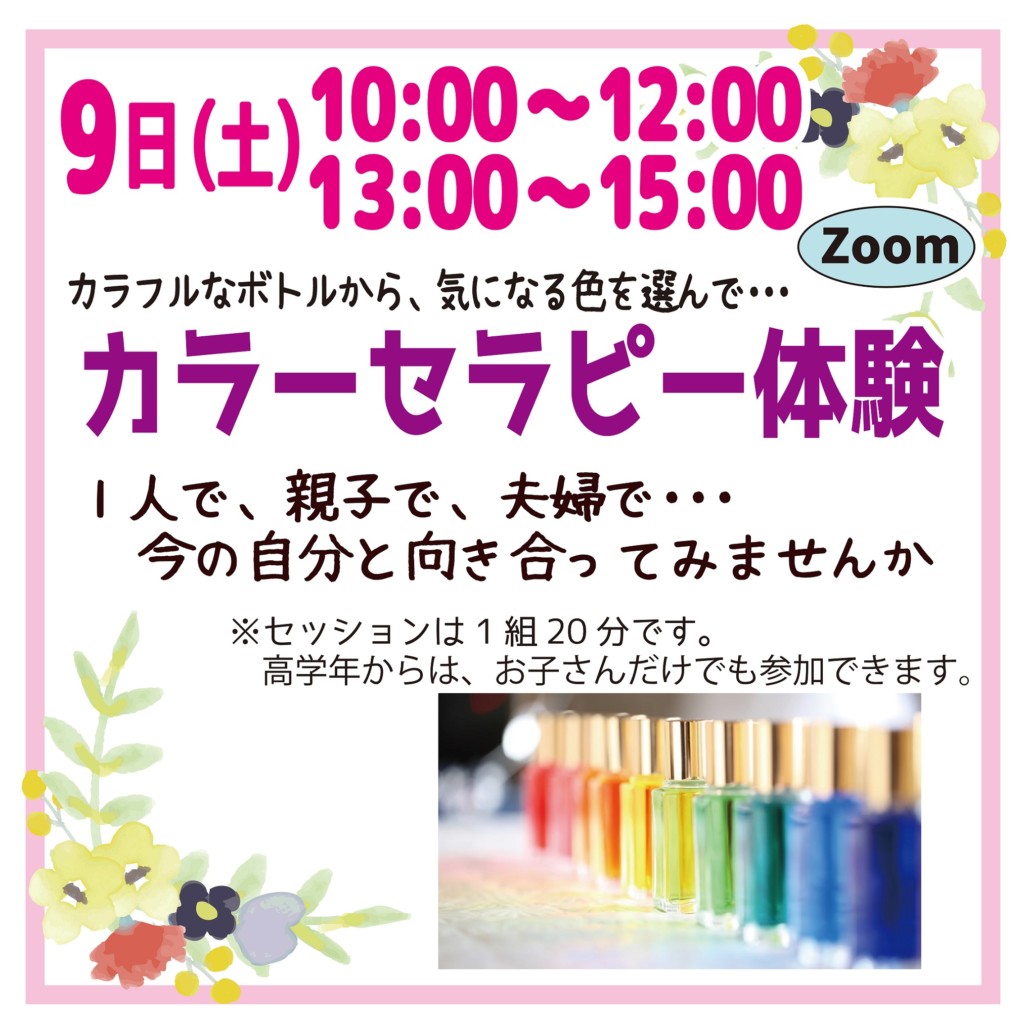 - フェスティバルでは、当スクールから、オンラインでカラーセラピー体験ができます。おひとりさま20分無料で、年齢性別は問いません。