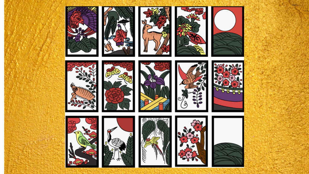 例えば、「松に鶴」「梅にうぐいす」「桜に幕」「菊に盃」などの札は、縁起の良いものとされていて、これらの札を集めることで、新たな一年が幸せになるように願っていたのです。