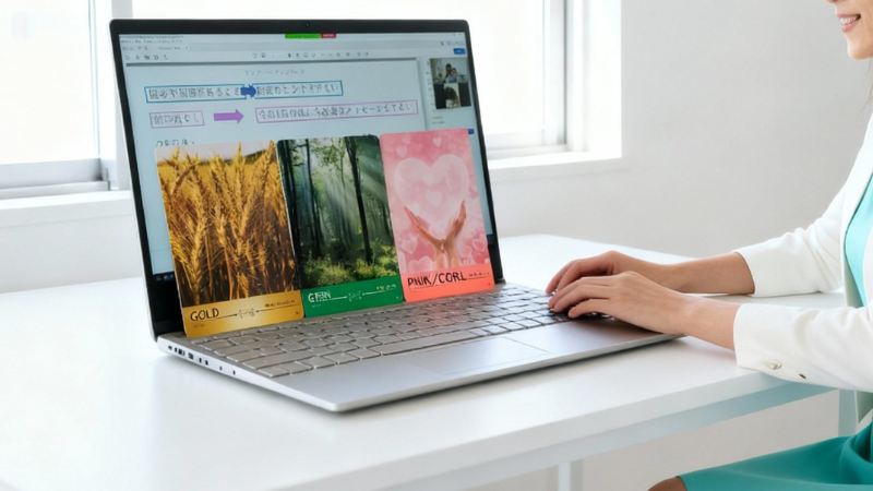 色を「選ぶ → 語る → 気づく」プロセスを、